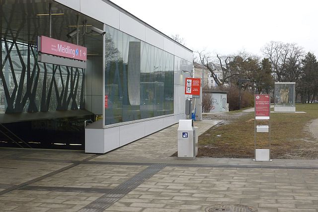 The second Southern Railway station included an underground stop for the Viennese municipal railway. This stop was modernised after the destruction of the old building and, being no longer part of the new main station, it got a new entrance, situated between three museums at the edge of a park.