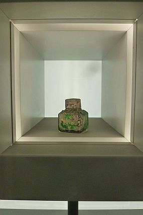 In the background of the opposite doorways we find two display cases with relics that were excavated while constructing the foundations of the new main station. In bad German, and in equally bad English, the labels tell the origins of the presented exhibits.