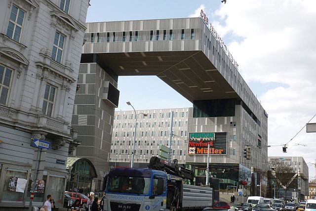 The planners then did not ask for the beauties of the past Gründerzeit (an Austrian equivalent of the German Wilhelminian style) while revelling in the modernity of the post war period which allowed for a renunciation of the pompiérisme of former imperialist and fascist times. But at the beginning of the new millennium, this second Southern and Eastern Railway station (Süd-Ostbahnhof) did not meet the necessities of accelerated hasty modern life: Terminuses were out of time. Through stations were the actual desideratum, and the buildings of the fifties were wrecked, the combined railway stations and the adjacent switching yard station, the post offices for parcel and packet traffic and the central customs offices — all this was replaced by an all European featureless Vienna Main Station.